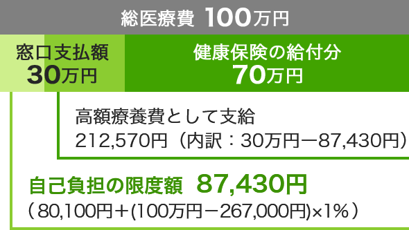 30歳独身男性、年収370万円の方が、1か月間で100万円の保険内診療を受けた場合。